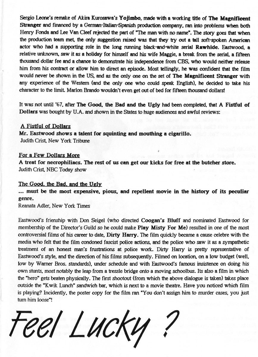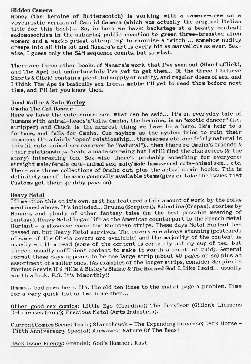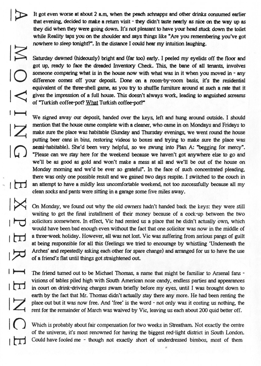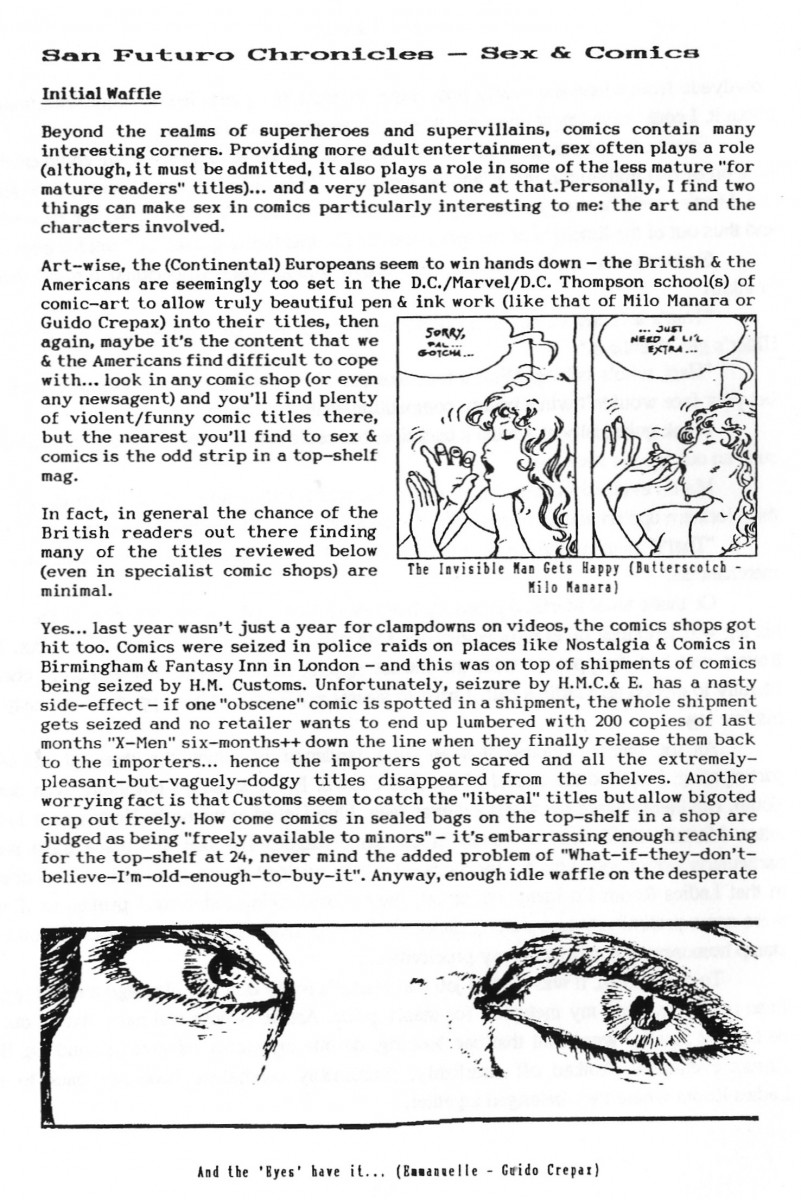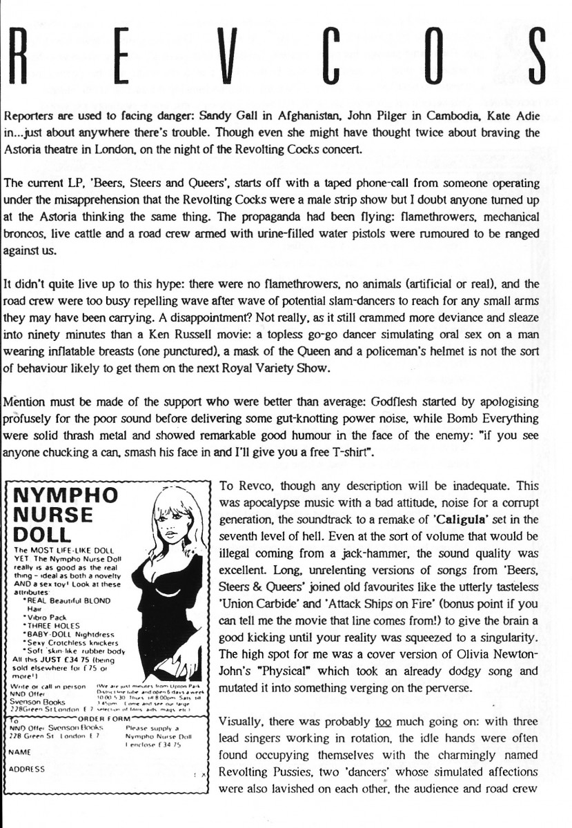 Thanks are due to Steve Rag, Dan Pydynkowski, Graf Hauser and Claire Blamey (all of whom have been feeding my NK obsession), Andy Waller, Paul Higson, Helen McCarthy, Stefan Kwiatkowski, Anthony Cawood, George Houston, John from Barlaston, Jay Felton, Tim Paxton, Damien Drake and Steve Moss. Congratulations to Fantasynopsis and Imaginator for taking the top places in Samhain’s ‘zine poll – definitely worthy winners. TC8 was available from Forbidden Planet, Fantasy Inn and Psychotronic Videos, London, plus Videodrom, Berlin and Forbidden Planet, Cardiff – maybe the last named will get round to paying me for the issues I sent them at some point?