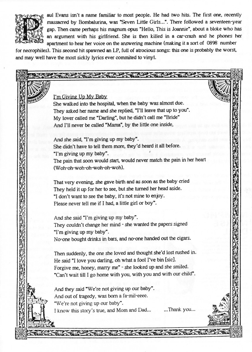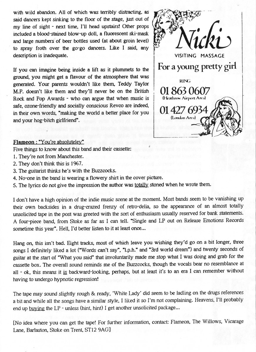 In the investigative spirit for which TC is famed, I’ll be going to see Transvision Vamp in concert before next issue and will be down at the front checking to see just how natural a blonde Wendy really is…