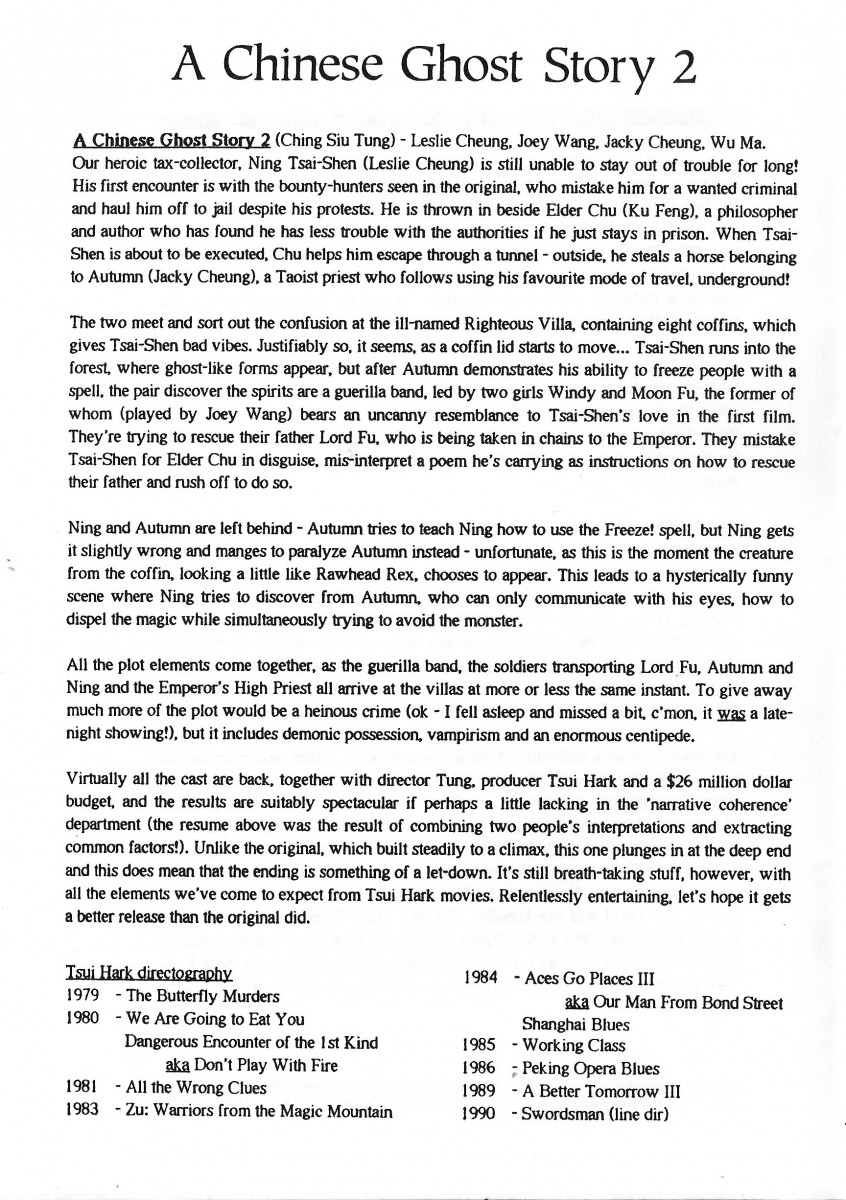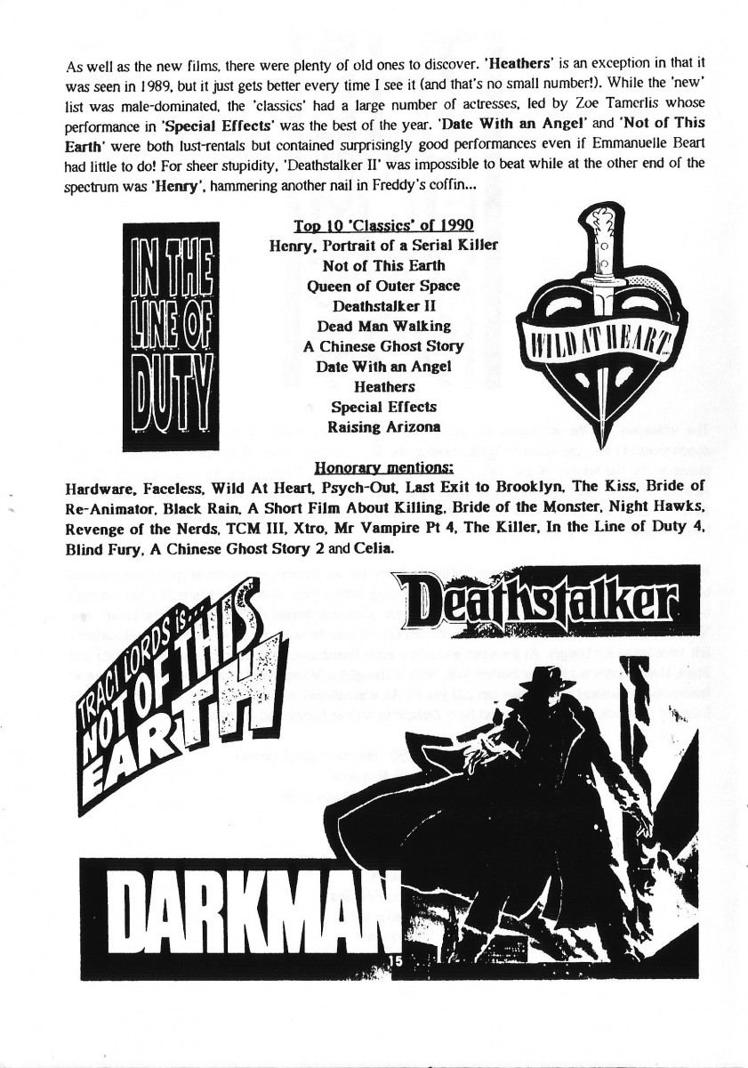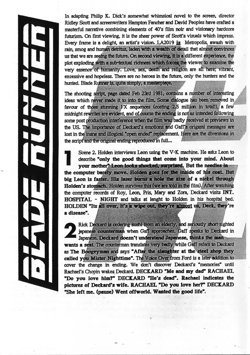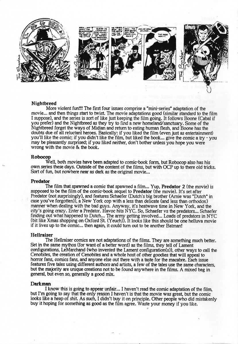 Just room for a swift plug for Andy Allard, who’s trying to organise a series of thematic retro presentations in (of all places) Scunthorpe. The first one was on Saturday October 27th, with Evil Dead 1 & 2, Videodrome, A Nightmare on Elm Street and C*rn*v*l *f S**ls (hell, 4 out of 5 ain’t bad!), all for four quid. For information on future events write to : A.Allard, Flat 6, 17 Westbourne Avenue, Hull, HU5 3HN.