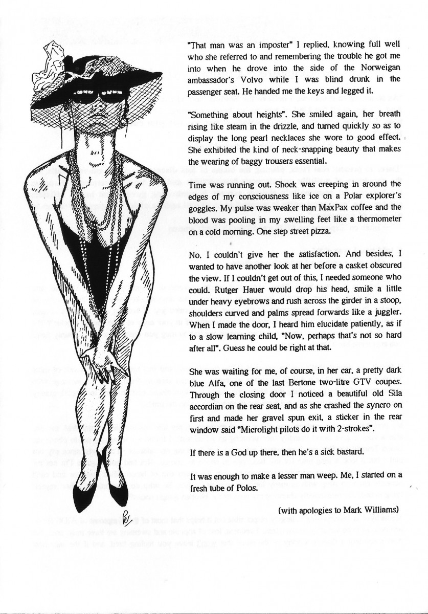 This issue is late again; I came back off holiday to find that a rogue program had chewed it’s way through places no self-respecting program would go, and it took me a fair while to restore everything back to where it was before I went on holiday, never mind getting on with anything else! Then we ran out of paper and Per, the layout man, had his Honda VFR 750 bike nicked which didn’t help.